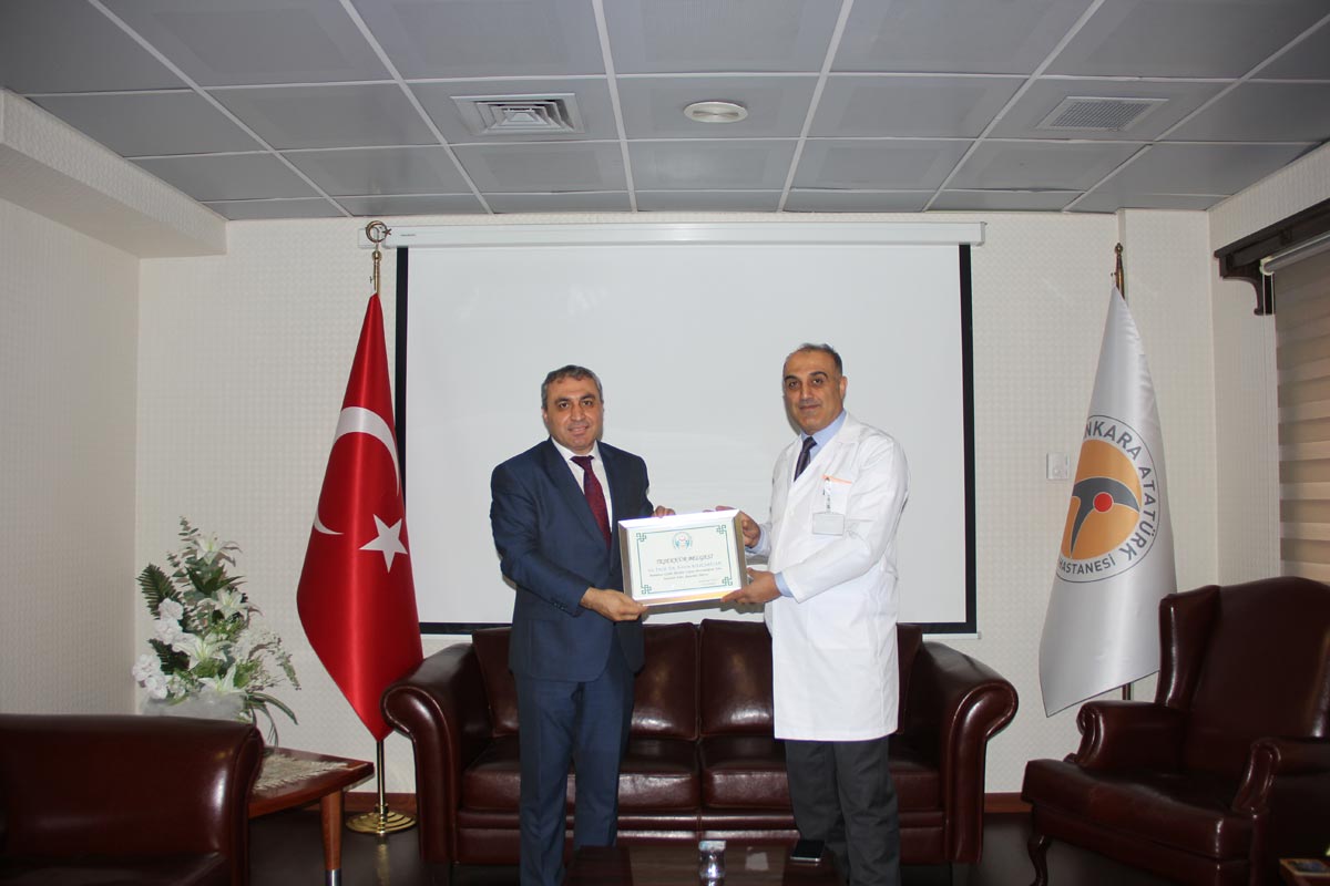 Sağlık Hakkı ve Hasta haklarını Savunma Derneği Başkanı Hamdullah Uğur ve Dernek Koordinatörü Handan Kara Özyürek, üye Canpolat Üresin ile birlikte Ankara Atatürk Eğitim ve Araştırma Hastanesi Başhekimi Prof. Dr.Kasım Kılıçarslan’ı makamında ziyaret etti.